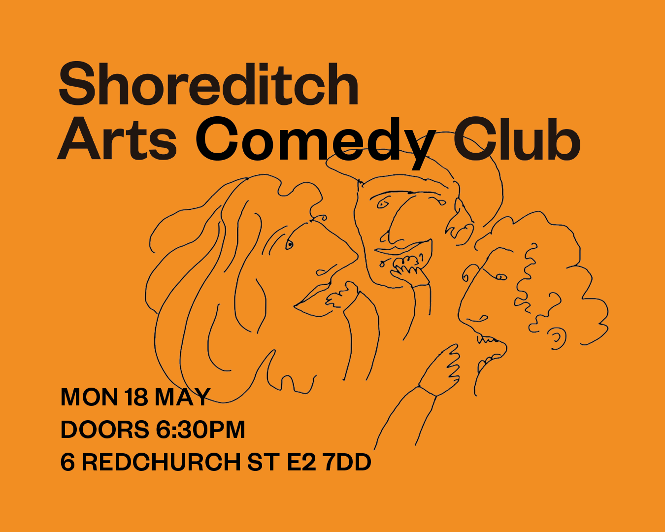 Monday 18th May, 6:30pm — 9pm: Shoreditch Arts Comedy Club